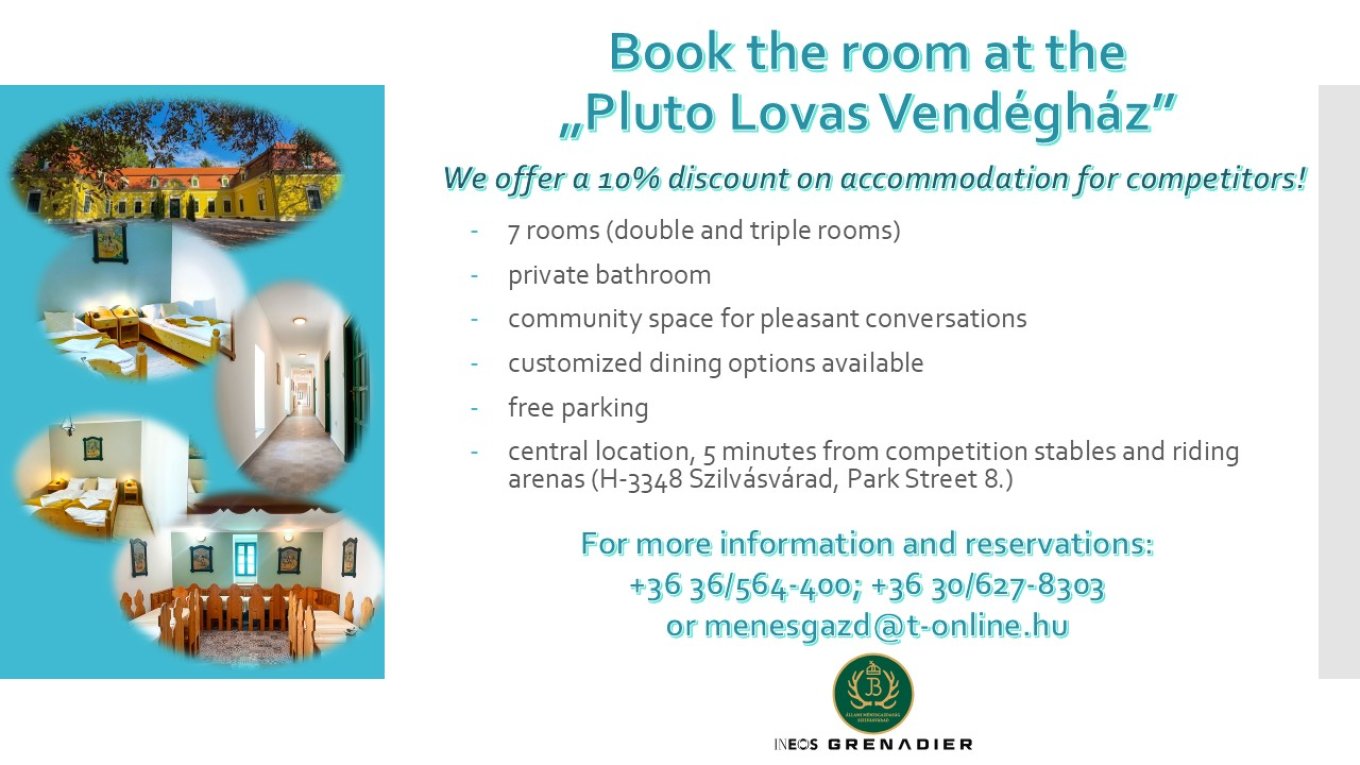 Book your room at "Pluto Lovas Vendégház" for the equestrian competitions taking place in April!